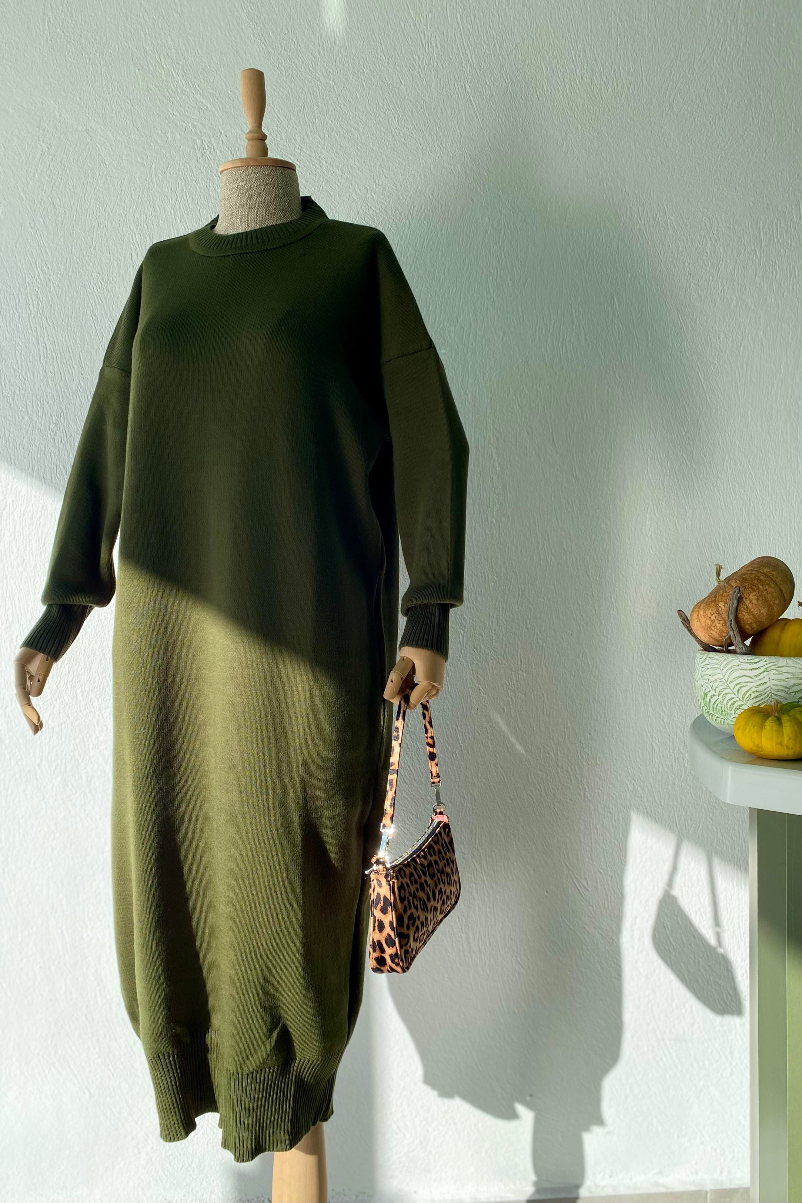 Basic Triko Elbise Haki Yeşil